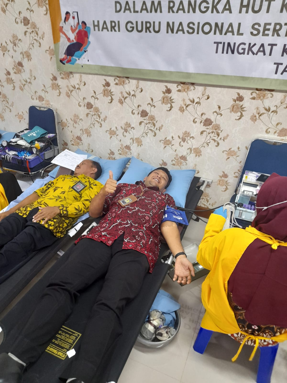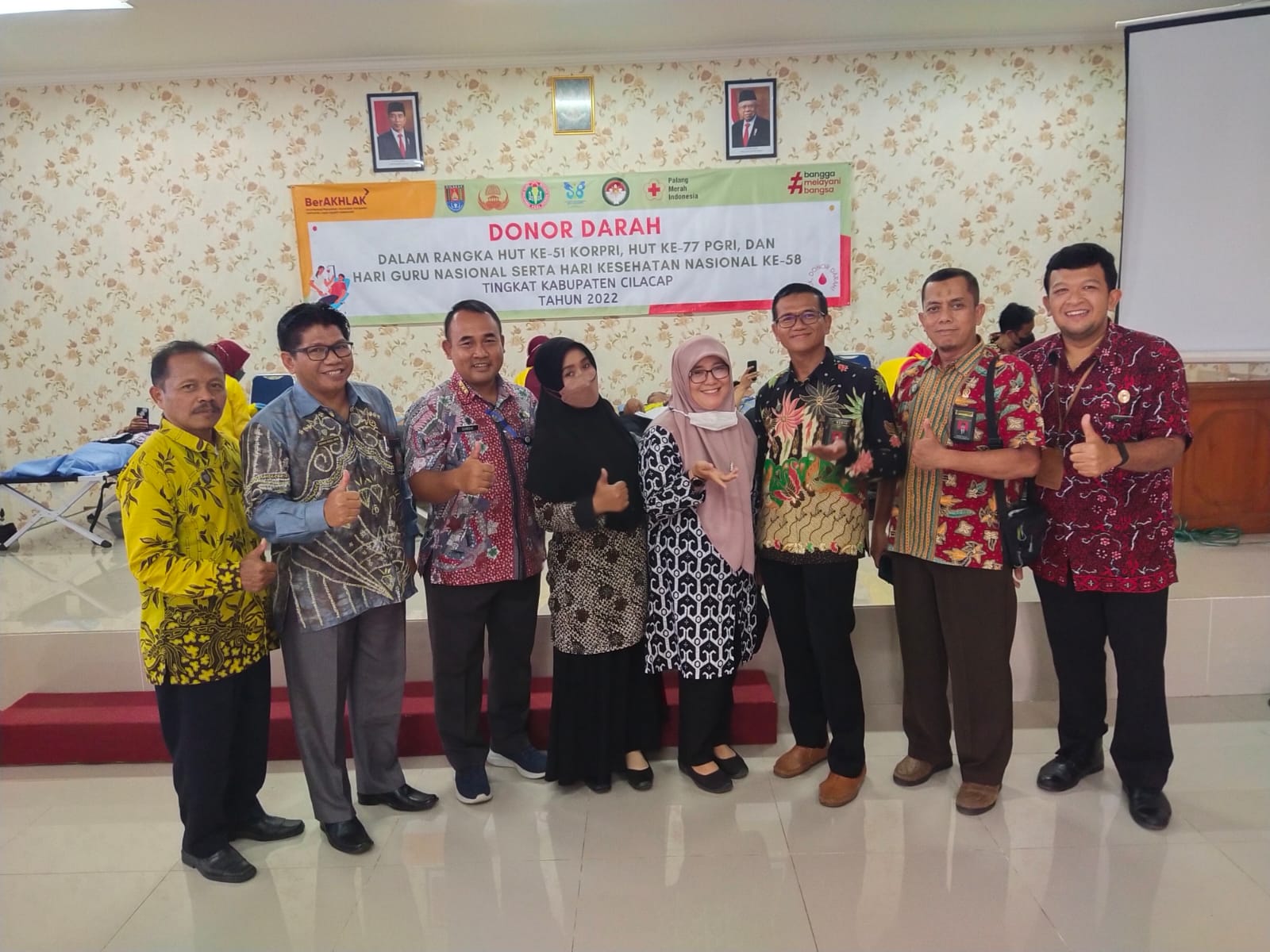 Cilacap – PA Cilacap, Kamis, 24 November 2022, sejumlah Pegawai Pengadilan Agama Cilacap mengikuti aksi Donor Darah dalam rangka HUT Korpri, HUT PGRI, Hari Guru Nasional, serta memperingati Hari kesehatan Nasional yang ke-58 tingkat Kabupaten Cilacap tahun 2022. Kegiatan Donor darah tersebut dilaksanakan di Pendopo Wijayakusuma sakti Kabupaten Cilacap yang mana dikomandoni langsung oleh Wakil Ketua Pengadilan Agama Cilacap, Yang Mulia Bapak Akhmad Kholil Irfan S.Ag., S.H., M.H. dan Yang Mulia Bapak Drs. Munjid Lughowi.