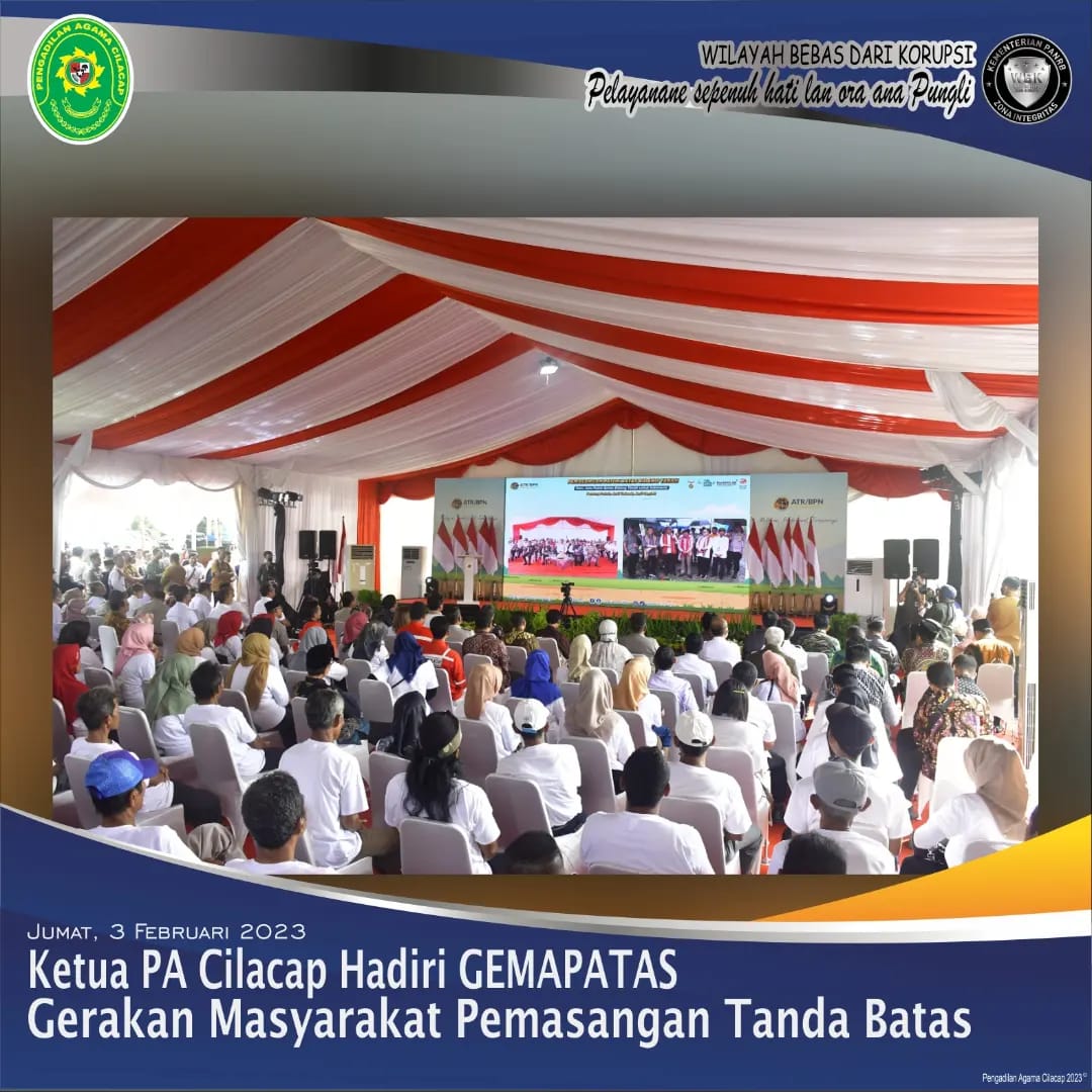 Jumat ( 03/02/2023 ), Ketua Pengadilan Agama Cilacap, Drs. M. Ihsan, M.H. menghadiri undangan dari Kantor Pertanahan Kabupaten Cilacap dalam kegiatan Gerakan Masyarakat Pemasangan Tanda Batas (Gema Patas) Tahun 2023 di Lapangan Desa Doplang Kecamatan Adipala.