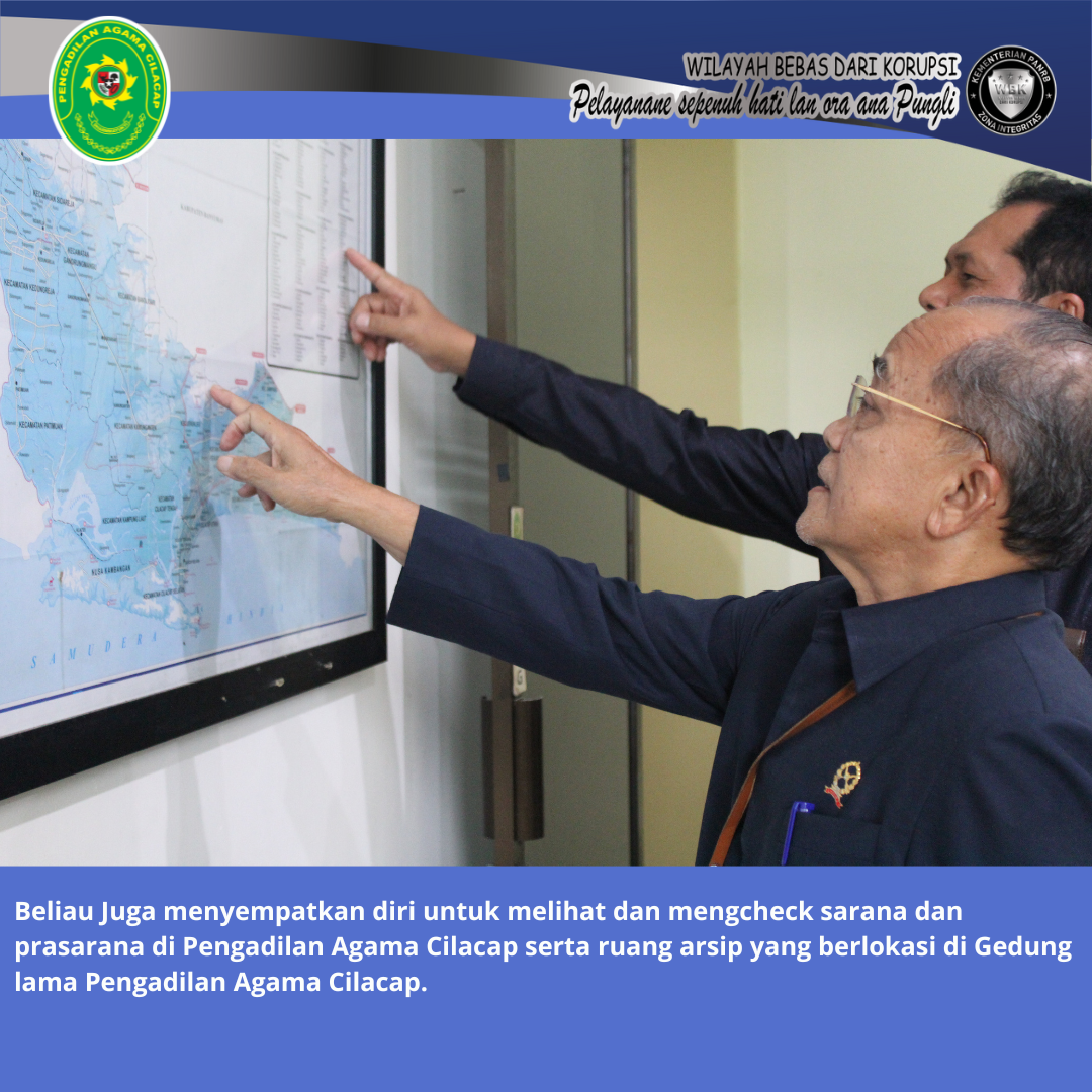 Dalam kunjungannya ke Pengadilan Agama Cilacap, beliau menyempatkan diri mengikuti zoom meeting koordinasi peradilan agama se-Jawa Tengah dari Ruang Media Center Pengadilan Agama Cilacap.