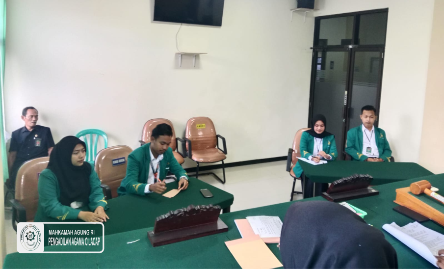 Cilacap, PA Cilacap - Setelah 1 bulan lamanya para mahasiswa UIN Syaifudin Zuhri Purwokerto yg berjumlah 12 orang melaksanakan PKL dengan pemberian materi dan diskusi dengan para Hakim, Panitera dan Sekretaris Pengadilan Agama Cilacap, dan juga pengamatan serta praktek di beberapa bagian baik kepaniteraan dan ke sekretariatan, maka mulai hari ini, Selasa 14 Februari 2023, dibawah bimbingan Hakim, dilakukan latihan sidang semu di ruang Sidang 3 (ruang Sidang Umar Abdul Aziz).