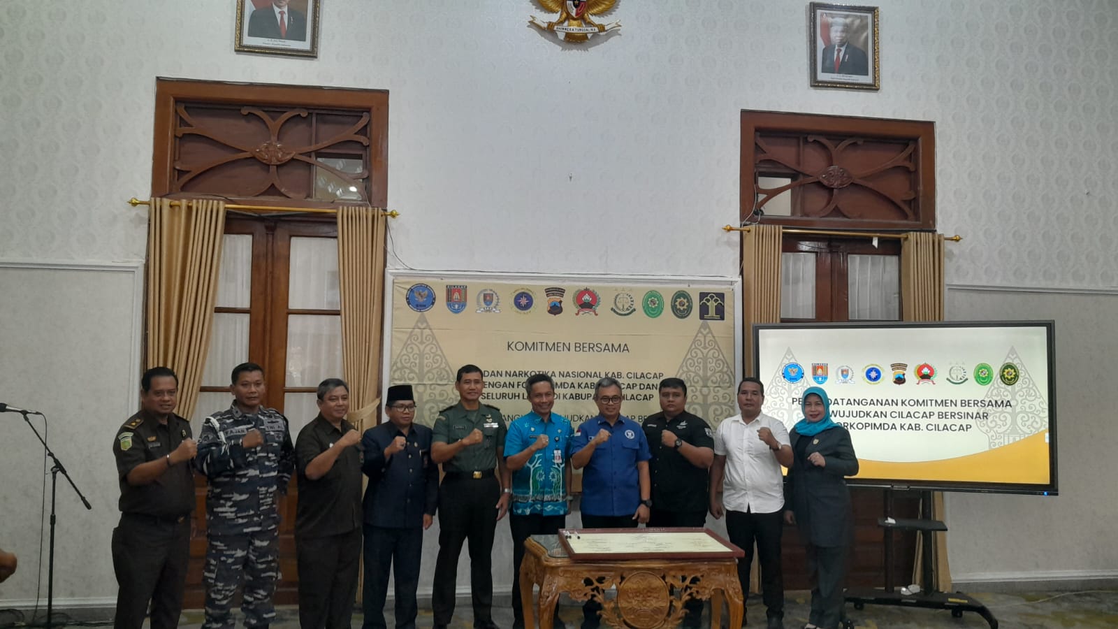 Pada sesi acara yang terakhir sebelum foto bersama seluruh pimpinan melalui Forkompimda Kabupaten Cilacap melakukan penandatanganan Komitmen Bersama dalam Pencegahan Pemberantasan Penyalahgunaan Peredaran Gelap Narkoba. Semoga ikhtiar ini dapat menjadikan kita terhidar dari segala macam bahaya laten Narkoba demi menyelamatkan Generasi bangsa yang sejahtera.