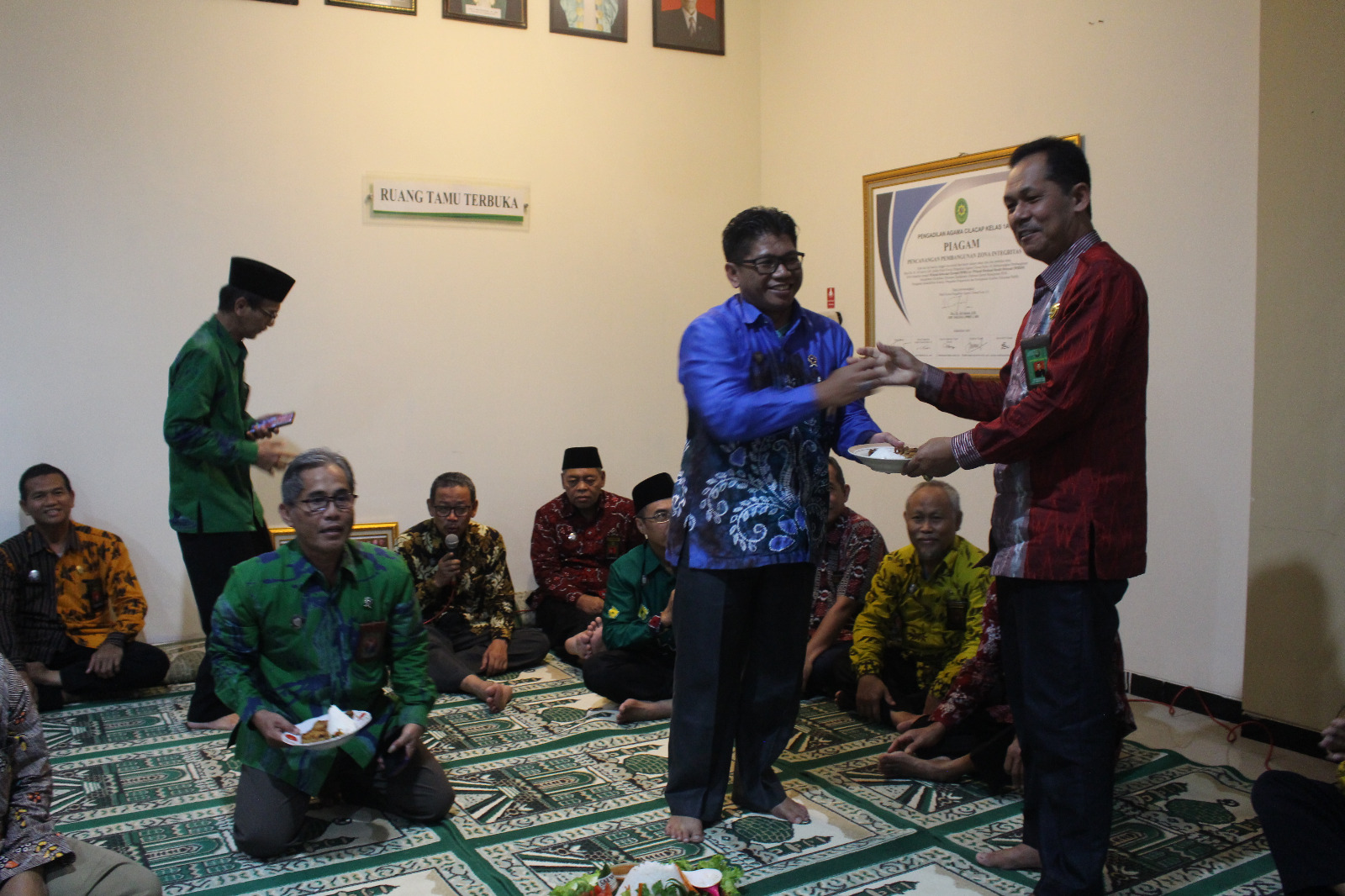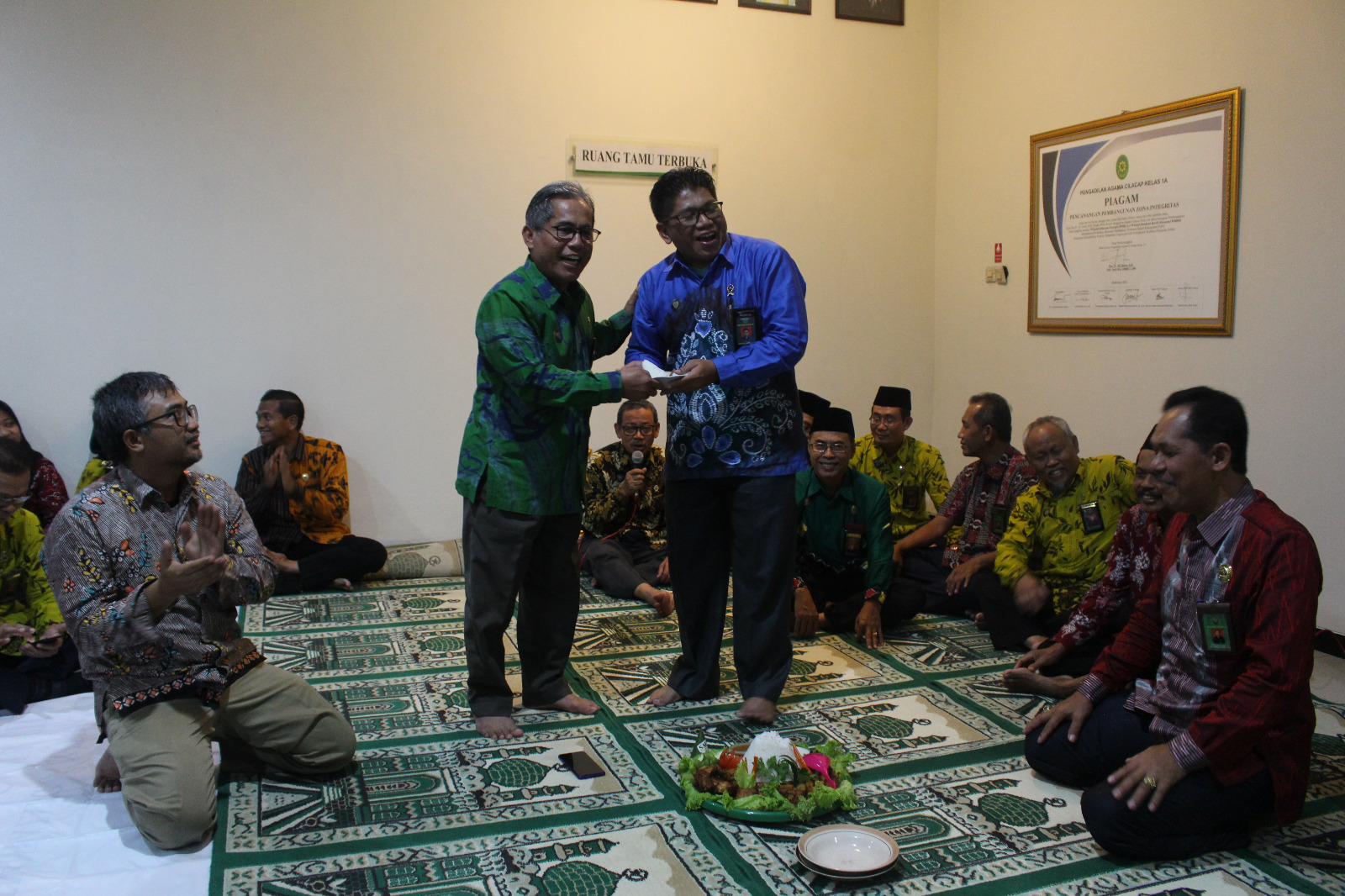 Setelah pemotongan tumpeng selesai, seluruh pegawai dipersilahkan menikmati hidangan yang sudah disiapkan dan dipesankan langsung dari salah satu UMKM kuliner andalan kota Cilacap. Semoga acara tasyakuran ini tidak hanya sebuah acara Ceremonial material berupa menyantap makanan saja, namun lebih dari itu dapat dikritalisasikan sebagai kegiatan transendental kita semua untuk lebih mendekatkan diri kepada Allah Swt.