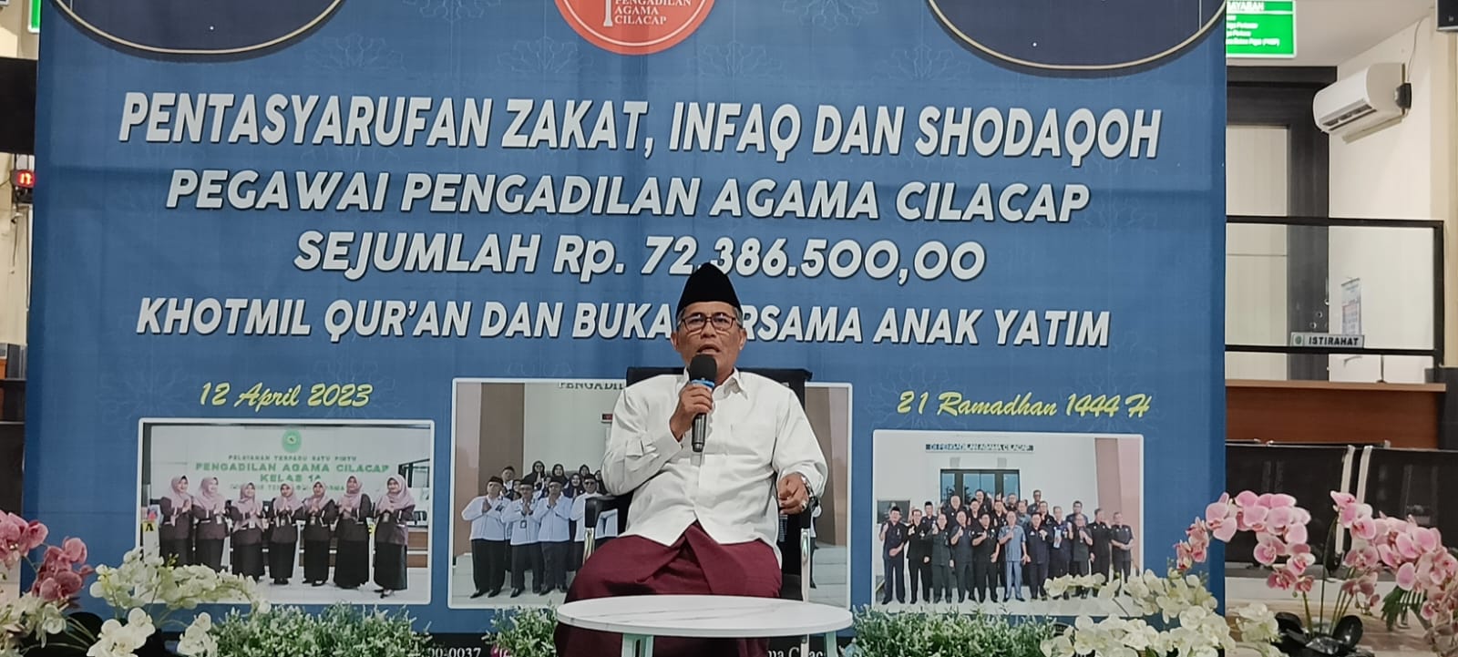 Pada hari Rabu, tanggal 12 April 2023 telah dilaksanakan kegiatan Pentasyarufan Zakat, Infaq Dan Shodaqoh di Aula ruang tunggu PTSP Pengadilan Agama Cilacap. Kegiatan yang diikuti oleh seluruh Pegawai Pengadilan Agama Cilacap tersebut merupakan bagian dari rangkaian kegiatan amaliyah Ramadhan 1444 Hijriah Pengadilan Agama Cilacap. Kegiatan amaliyah ramadhan sendiri sebenarnya sudah dilaksanakan sejak awal bulan Ramadhan mulai dari acara pembagian takjil, tadarus alquran, solat tarawih Bersama, beserta kultum zduhur di Musolla Al-Mizan dan termasuk kegiatan ini yang diperuntukan sebagai ajang silaturrahmi seluruh pegawai sekaligus mentasyarufan zakat, infaq dan shodaqoh yang telah terkumpul dari Pegawai Pengadilan Agama Cilacap dan telah dikoordinir oleh Unit Pengelola Zakat (UPZ) Pengadilan Agama Cilacap.