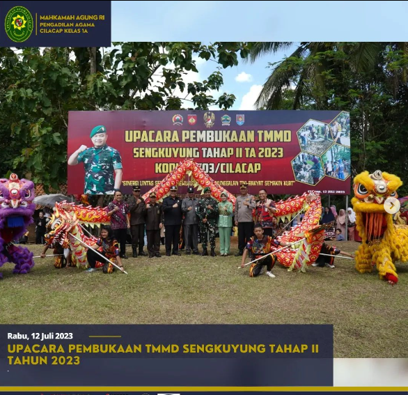 Rabu, 12 Juli 2023 Ketua Pengadilan Agama Cilacap, Drs. M. Ihsan, M.H. (tiga dari kiri) Menghadiri Upacara Pembukaan TMMD Sengkuyung Tahap II Tahun 2023 di Lapangan Desa Panulisan Barat Kecamatan Dayeuhluhur