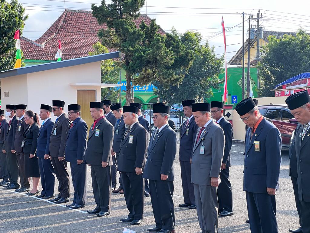 Cilacap - Pengadilan Agama Cilacap mengikuti Upacara Peringatan HUT Mahkamah Agung Republik Indonesia ke 78 yang bertmepat di Pengadilan Negeri Cilacap, hal ini berdasarkan Surat Edaran Mahkamah Agung RI Nomor 1398/SEK/HM3.1/VIII/2023 tentang Peringatan HUT Mahkamah Agung Republik Indonesia ke 78. Kegiatan ini diikuti oleh seluruh pegawai baik Pengadilan Negeri Cilacap dan Pengadilan Agama Cilacap