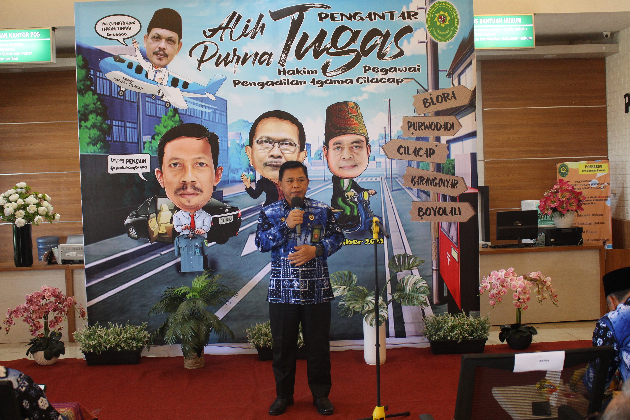 Jumat, 08 September 2023, pukul 09.00 WIB bertempat di Ruang PTSP, Pengadilan Agama Cilacap menyelenggarakan acara Pengantar Alih Tugas Hakim serta Purna Tugas Pegawai yaitu :